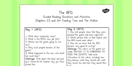Free Guided Reading Questions Chapter 7 To Support Teaching On The Bfg